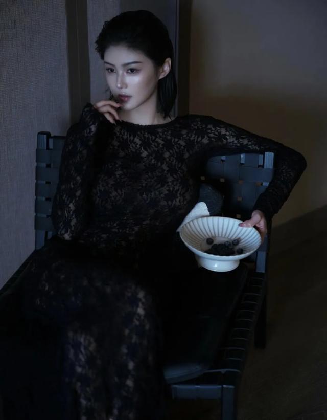 在光影交织的角落,车模小姐姐程儿身着一袭黑色蕾丝长裙,宛如暗夜精灵。蕾丝的纹理诉说着细腻与神秘,勾勒出曼妙身姿。她静立窗前,似在与时光对话,周身散发着冷冽又迷人的气场,于无声处,将优雅与魅惑诠释得淋漓尽致。