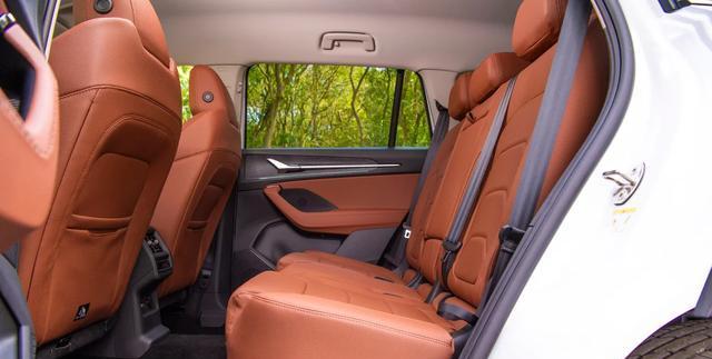 内饰上,全新柯迪亚克采用悬浮大屏,类大众车机系统增强交互。液晶仪表与HUD构成双屏,提升科技感。中控台多层次皮革缝线配木纹面板,质感超大众。保留物理按键,便于操作。