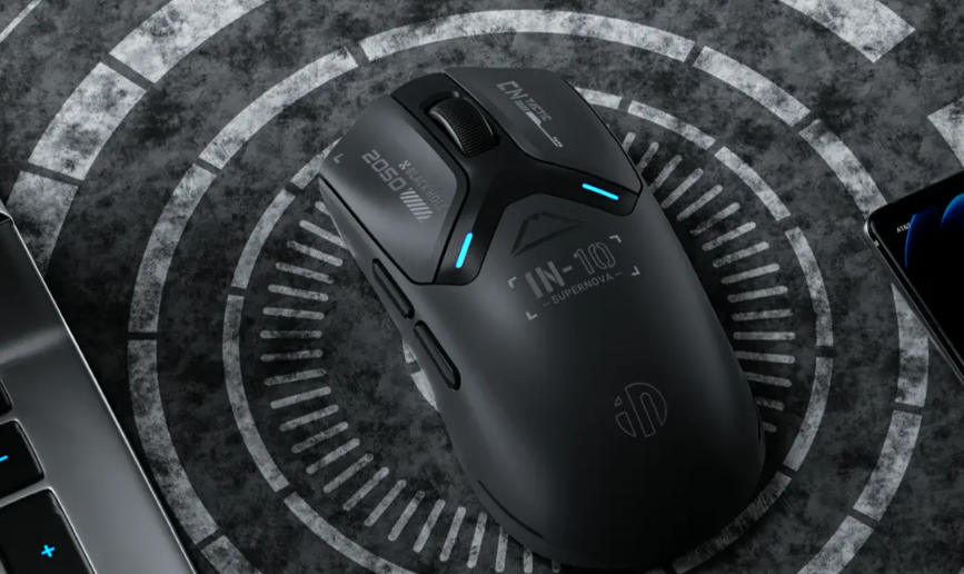 IN10和IN9 PRO的核心性能几乎一致。都搭载了原相PAW3395旗舰级传感器,均为英菲克KP950B定制主控芯片,同样的最高支持26000DPI和8000Hz回报率,同样支持8k超高分辨率。特别要说的是,英菲克定制的这款KP950B芯片,抗干扰能力很强,实测下来功耗特别好。