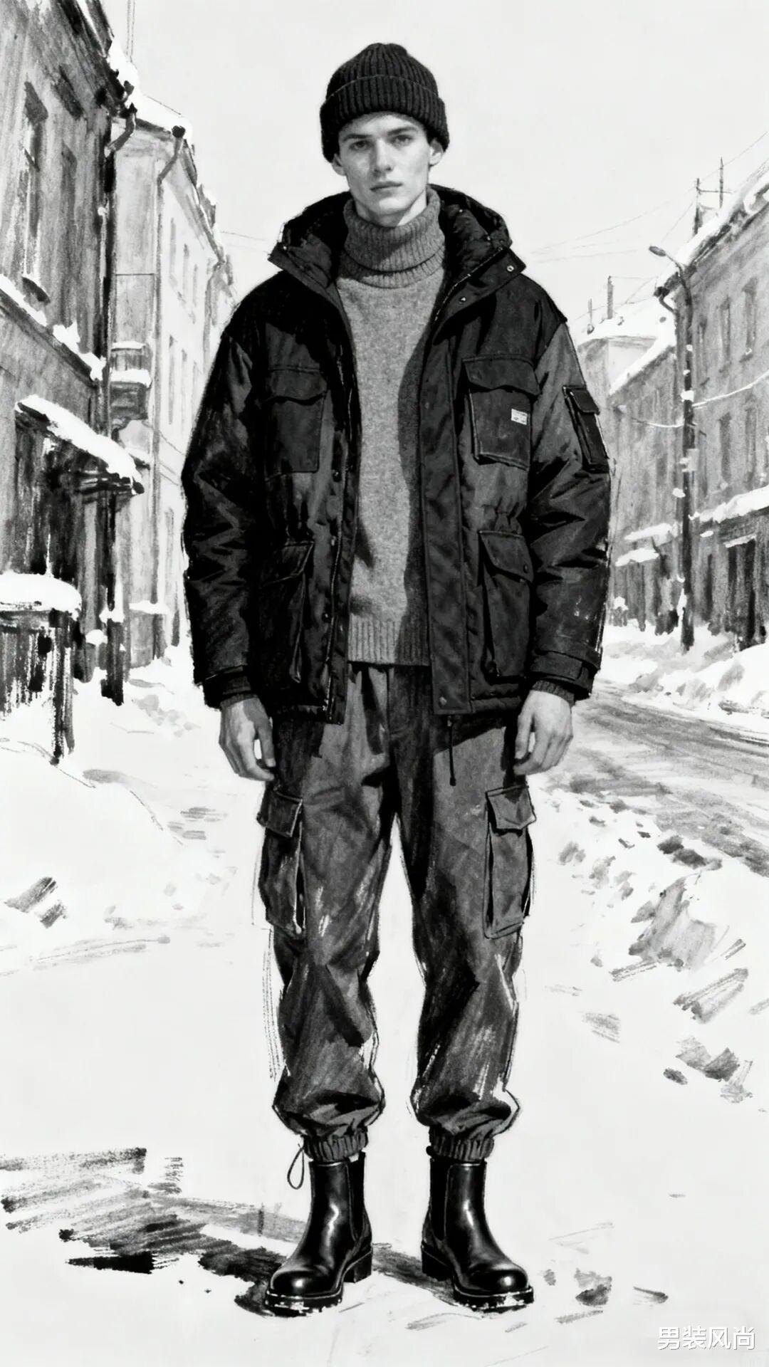 ——它褪去了潮流的浮躁,带着美式复古的硬朗与日式工装的细腻,既能抵御北方的凛冽寒风,又能在细节处彰显独特品味。