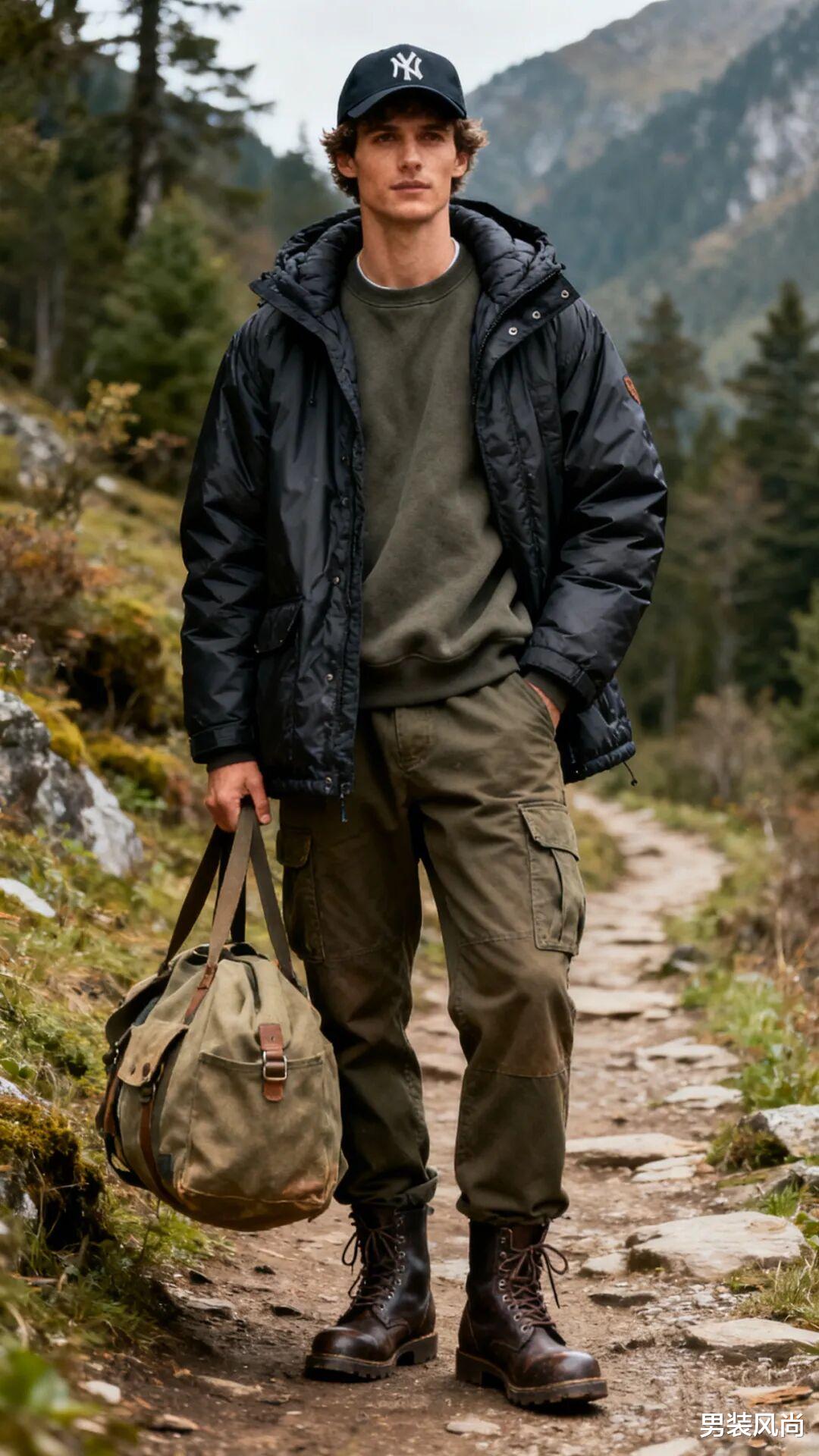 • 户外出行/短途旅行:侧重实用保暖,叠加层次更丰富。薄款棉服 + 重磅卫衣 + 工装裤 + 马丁靴,搭配帆布包和棒球帽,既能抵御户外寒风,又方便活动;选款时优先防水、耐磨材质,比如防水棉服、厚实工装裤,实用与颜值兼顾,拍照也上镜,随手一拍就是复古旅行大片。
