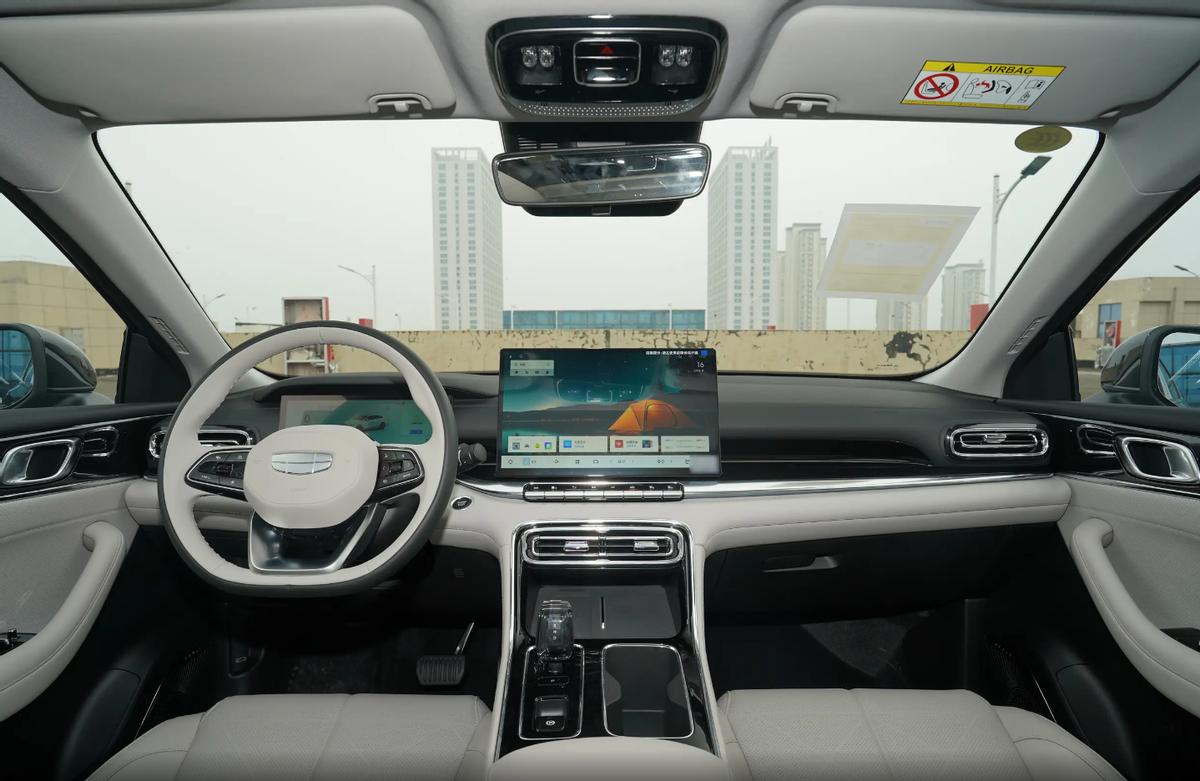 而来到车内之后,第五代帝豪的中控布局也让我感到陌生,相比第四代完全就是两台不同的车。而且值得一提的是,新款帝豪除了入门版车型之外,均标配了实拍图中14.6英寸的中控大屏,同时中控屏幕下方的物理按键,也让新车具备智能科技感的同时,兼顾了实用性和便利性。此外,新车全系标配Flyme Auto车机系统,所以能够带来更流畅的车机响应,以及更丰富的人机交互功能。