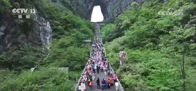 像传统景点,如张家界、敦煌、天山等地,则是一如既往的“人挤人”。景区每天放出的门票根本不够用,大量人排队预约,等着进去参观。