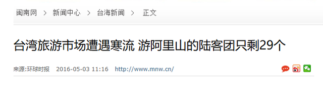 2016年,官方就曾播报过,五一期间大陆赴台旅行团骤降三成左右,去阿里山的旅行团仅有29个,和以往的600多个相比,简直云泥之别。