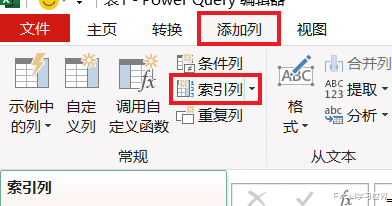 3. 选择任务栏的“添加列”-->“索引列”