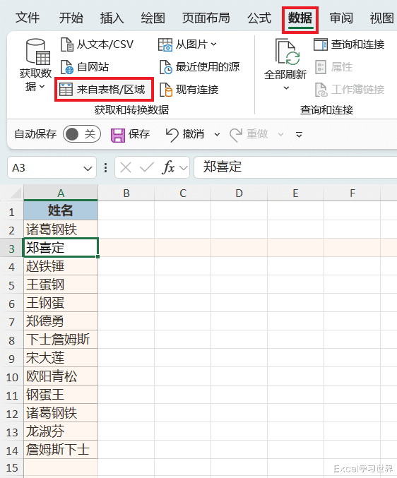 1. 选中数据表的任意单元格 --> 选择任务栏的“数据”-->“来自表格/区域”