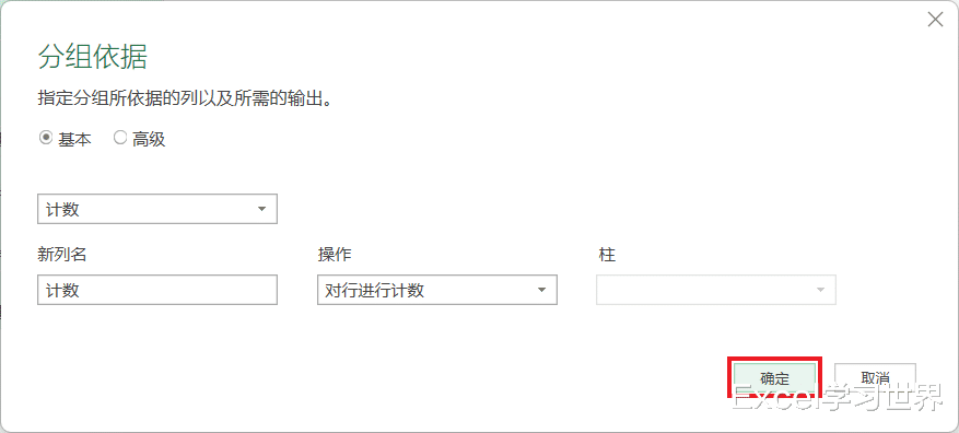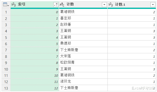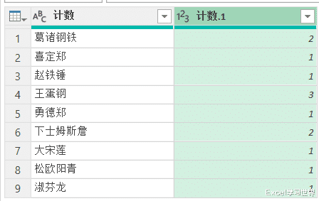 12. 选中“计数”列 --> 选择任务栏的“主页”-->“分组依据”