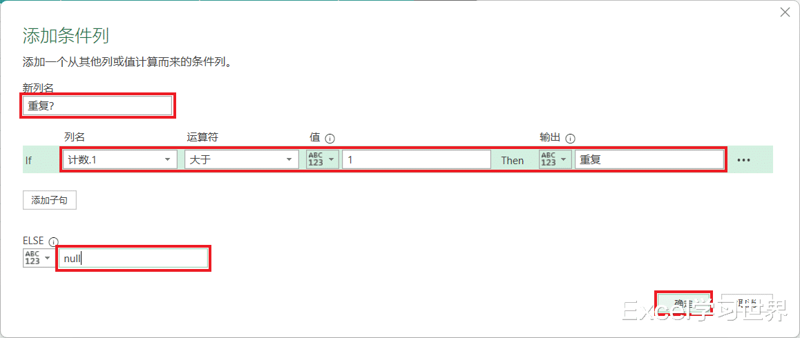 18. 选择任务栏的“添加列”-->“条件列”