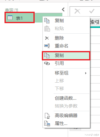 11. 复制“查询”区域中的“表1”。