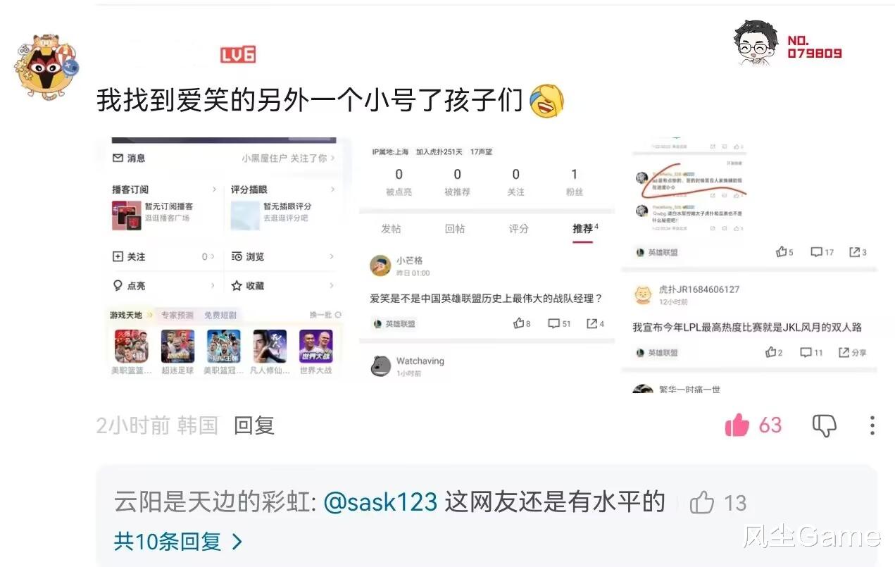 这种吐槽并没有人在意,毕竟BLG没打好的时候,大家都会指责几句,但去年的发文和回帖,就开始充满异味了,这个号多次吹嘘爱笑的能力,并且嘲讽滔搏、BLG、京东等队伍,最过分的是,他甚至投票带郭浩辞职的节奏,最开始大家都还只是怀疑,发帖说这个小号应该是爱笑的。