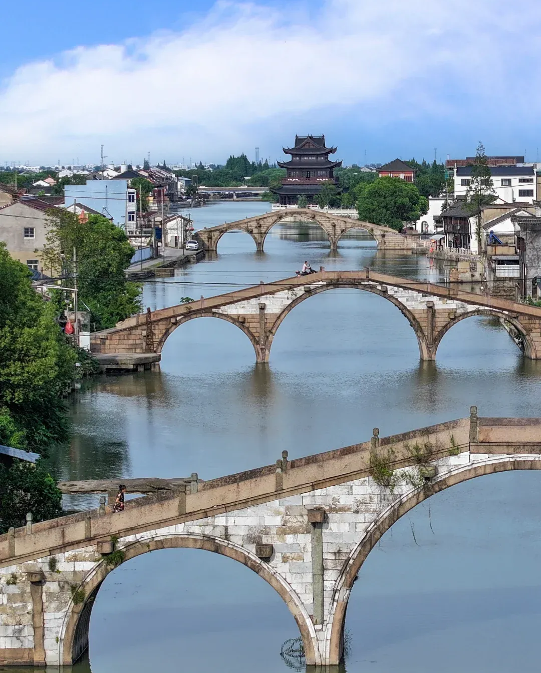 漫步古镇,青石板路蜿蜒曲折,临河的老房子靠在河边,木雕门窗镂空精致。河水清澈,倒映着岸边的粉墙黛瓦,偶有白鹭掠过水面,构成一幅动人的江南水墨画。古镇内最引人注目的是那三座名闻遐迩的古桥——万元桥、化成桥和万魁桥,它们横跨双林塘,由西至东依次排列,形成了独特的人文景观。