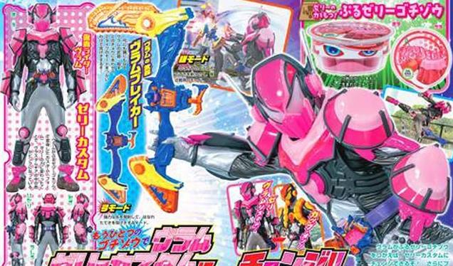 布拉姆的主要核心武器是弓箭,不仅能作为远程武器进行超视距打击,还能切换成近战武器对敌人发动劈砍攻击。这种设计与铠武中创世纪形态的弓箭定位相似,非常适合近战劈砍。杂志图中显示,二骑绊斗明显成了炮灰,被布拉姆一顿胖揍,而主骑的蛋糕王形态则显得游刃有余,尚未吃瘪。