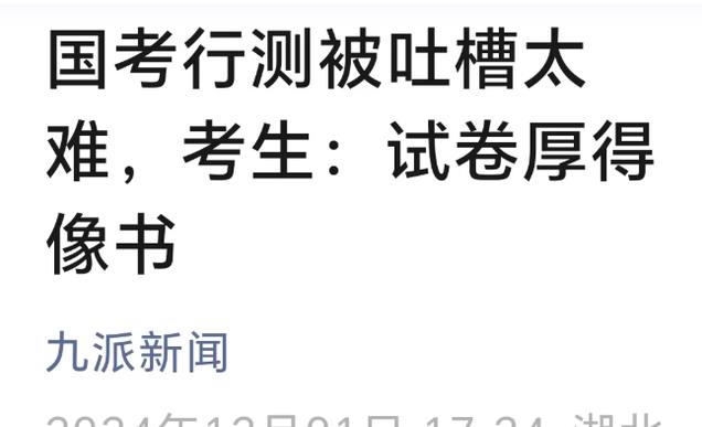 针对2025年国考试卷,有考生吐槽说:今年国考太难了,题量大,新题型多。试卷结构与历年真题变化有点大。行测试卷发下来后,试卷厚得像“一本书”,当时就心慌慌了。