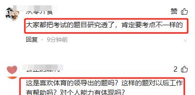 网上类似的吐槽比较多。上午的行测新增了政治理论模块后,单单是政治理论就有20题;试题还比较新颖;考到了科技体制改革、保障粮食安全、绿色低碳发展等多个热点,还出现了竞技体育的试题,让部分女生很“迷糊”。