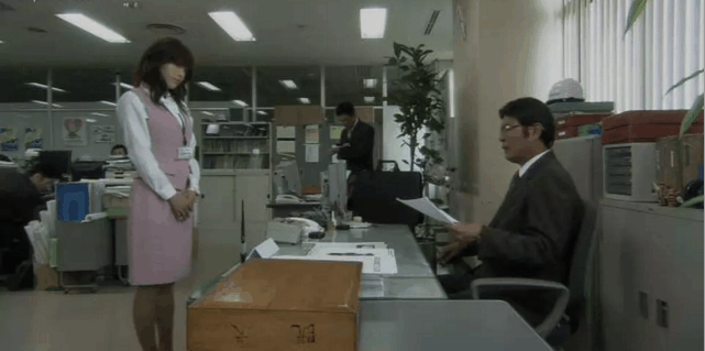 部长日常训斥女演员,身为文员不好好做事,简直过分,女主一脸的无所谓,显然早已习惯,部长觉得这样骂不过瘾,便喊她到天台上接着训话。