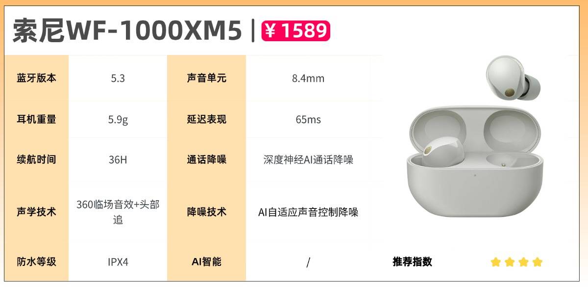 推荐四、索尼(SONY)WF-1000XM5