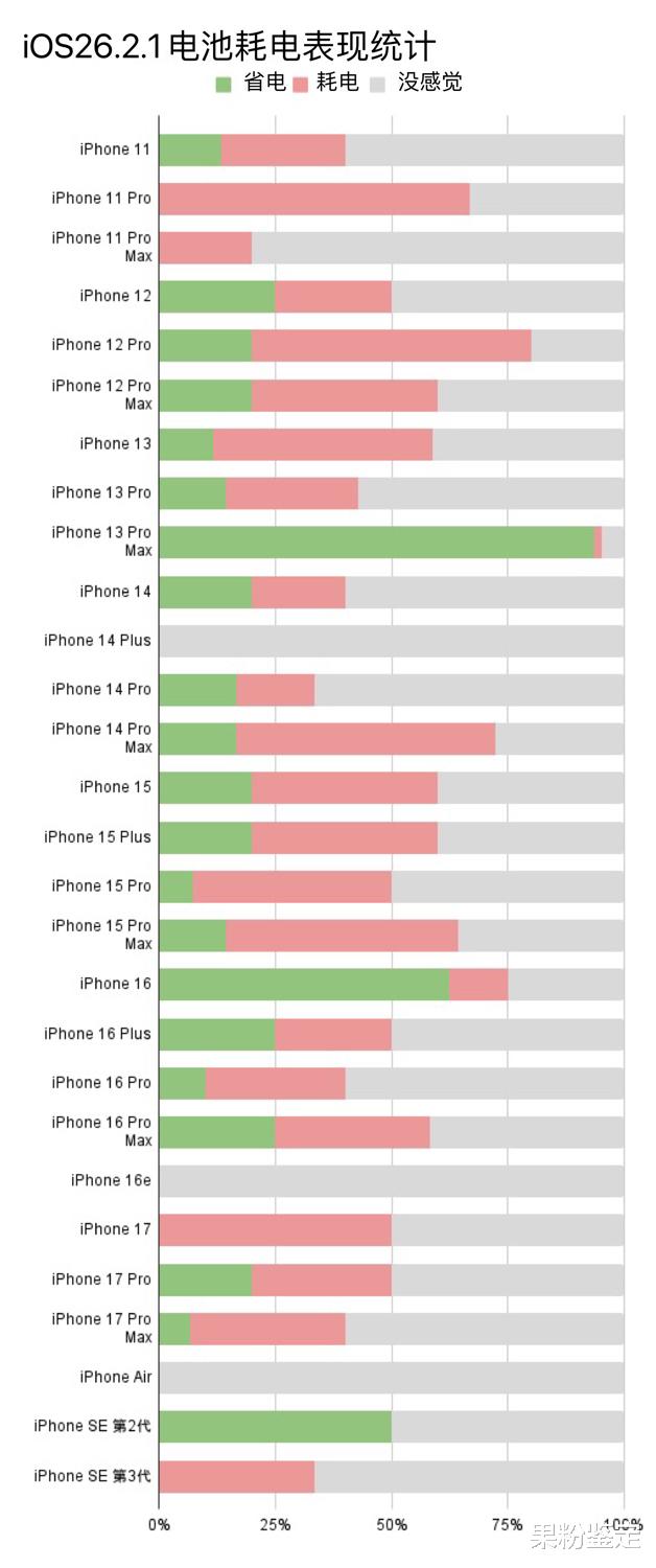 苹果官网昨天更新了iOS26.2.1系统版本,这个版本是小版本更新,主要以修复bug和稳定性为主,那么很多人纠结到底要不要升级到iOS26.2.1正式版,今天带来外网博主根据升级后共同反馈而成的统计结果。