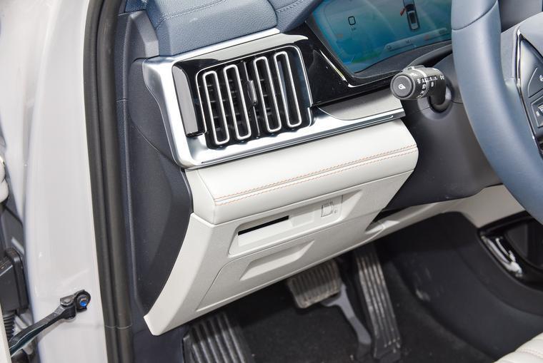 起亚EV5方向盘造型很好看,副驾驶前方中控台的棱角也很吸引人。仪表盘尺寸为12.3英寸,仪表盘和中控屏之间还有一块5英寸的空调控制屏幕。