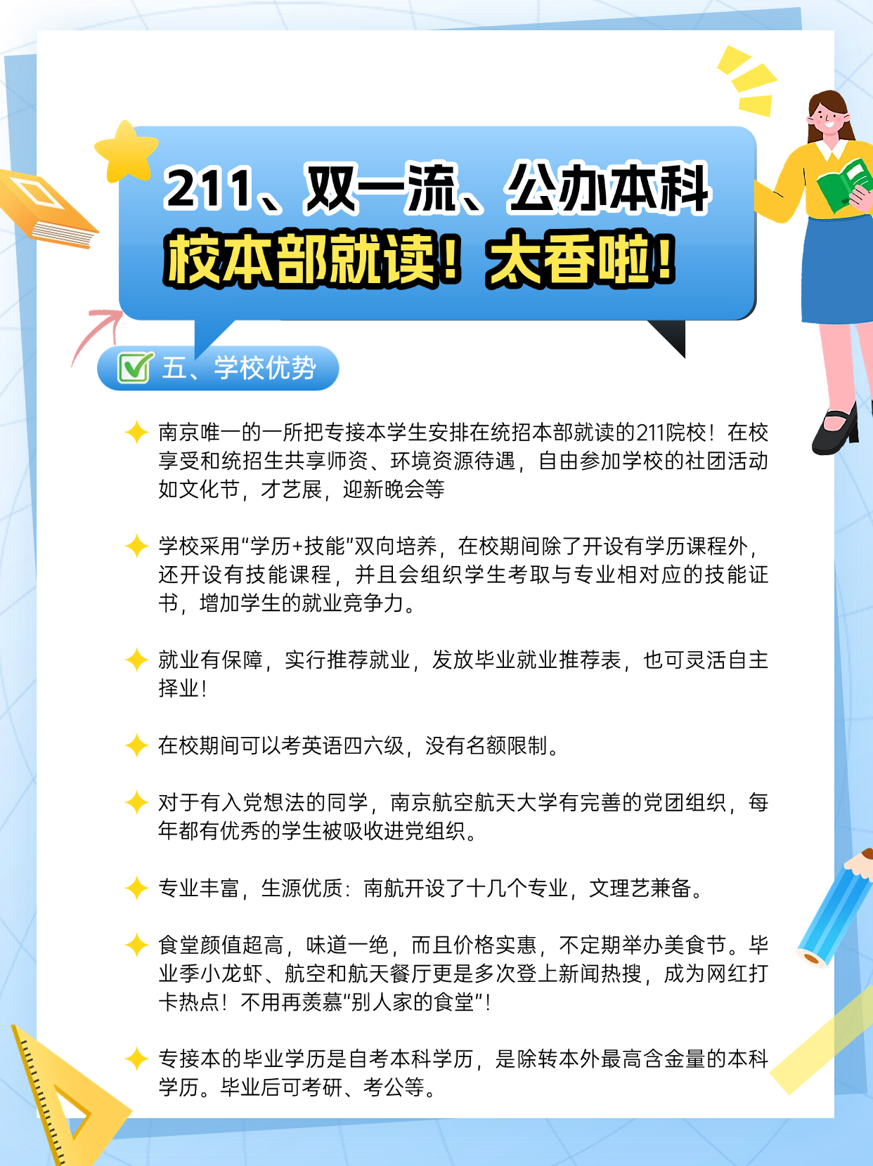 南京航空航天大学全日制自考助学本科,共享名校优质教育教学资源。国家承认学历,学信网可查;可以考公、考研、出国留学。