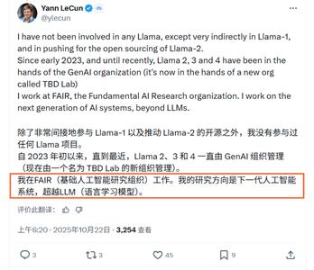 LeCun在X上发帖,撇清自己和Llama项目的关系(来源:X)