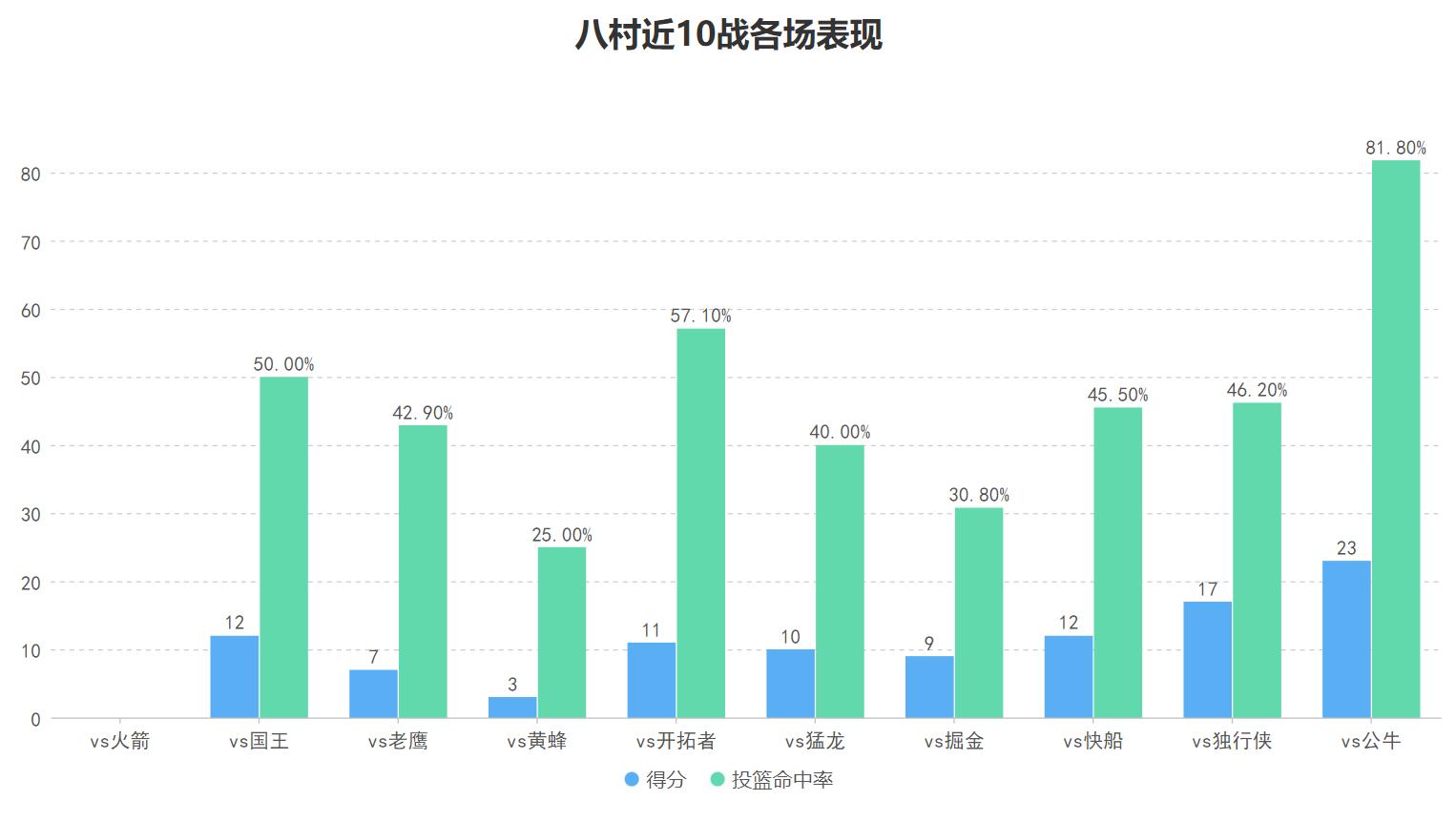 八村此战的23分不算多但他出手了11次命中了9球,这个得分效率可谓非常高效,虽然在湖人的主力阵容里八村是毫无争议的角色球员,他的场均得分也不过12.5分,但他却具备10名主力球员中最高的三分命中率,可以说即使有过单场较为低迷的时刻但总体来看他就是湖人的最佳射手,球队需要他做出进攻端的贡献。