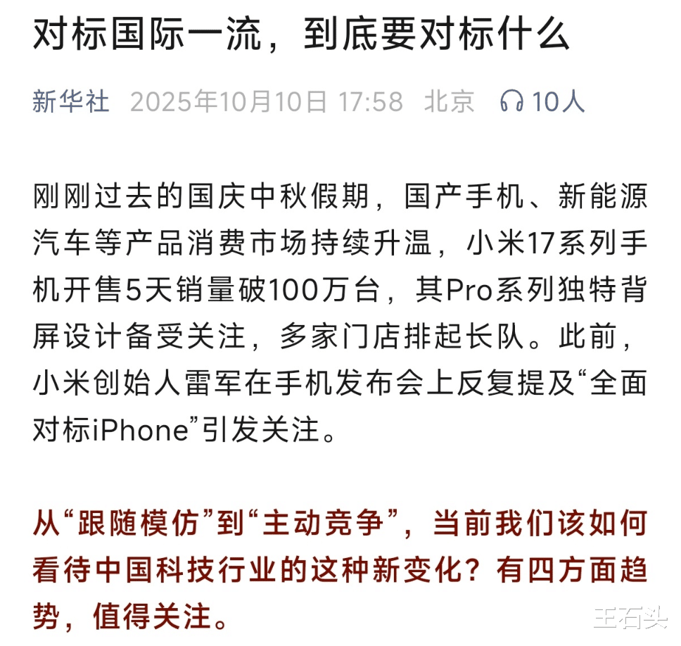 用户现在买小米,还会像几年前那样纠结“品牌行不行”吗?大家看的是实打实的产品和体验,你看看小米SU7,二三十万的车却卖那么好,这背后就是用户用真金白银投出的信任票。
