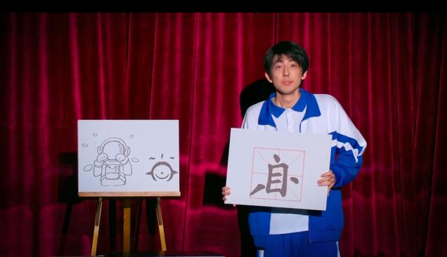 陶宇杰初登场就用了一种神经的特质表演了一场“单人小品”,叫宇杰造字,谐音仓颉造字。仓颉造字是一个古代传说,说他“双瞳四目”,观察鸟兽足迹,得到了启发,从而创造了文字。这本是一个很经典又很值得尊敬的事情,结果被陶宇杰拿来调侃。