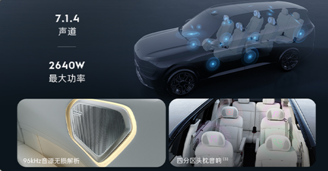 同时领克900还搭载了哈曼卡顿31扬声器performance音响系统,甚至比路虎揽胜SV还多出两扬,还有行业独有96kHz无损解析系统,让音质更上一层楼。配合7.1.4杜比全景声及4个专利热插拔头枕音响,让车内宛如一个移动音乐厅,坐在车里就能随时听一场音乐会。