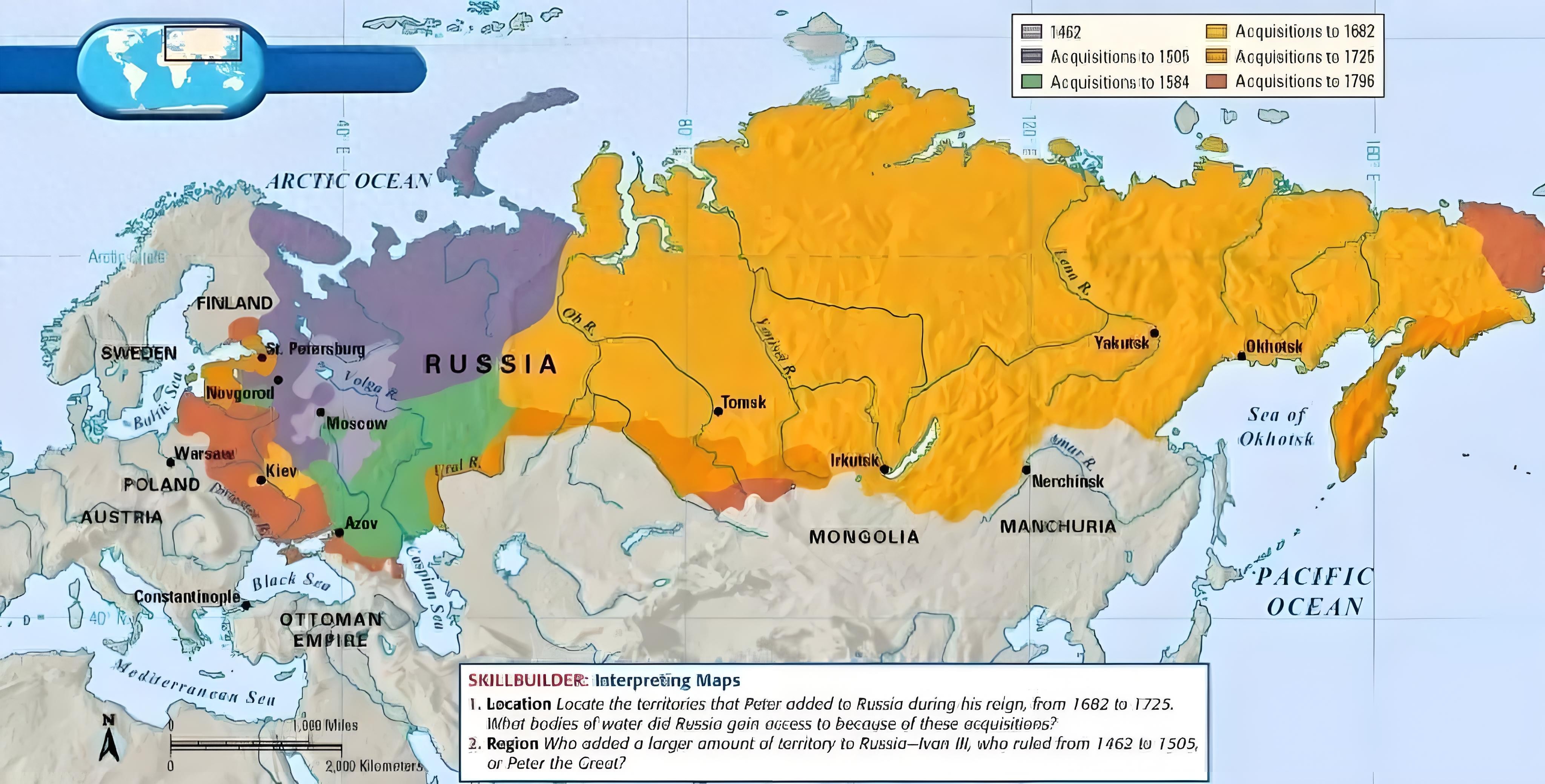 整个18世纪,俄罗斯帝国已经逐步向东扩张至西伯利亚。