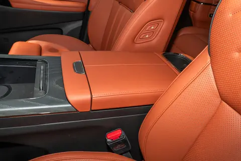 步入车内,如同步入豪华而宁静的专属空间。内饰设计富含东方意境,采用北美百年原木面板,纹理如泼墨山水,视觉效果自然舒适,营造出“阅千山行万水”的诗意境界。内饰主题提供游云阅川、淡墨千山、褐韵崇山三种风格,各具特色,满足不同消费者的审美偏好。中控布局简约大气,以电子怀挡取代传统档杆,释放大量储物空间,整体线条流畅,宛如东方美学中“隐而不显”的哲思,既便捷实用又不失高雅格调。
