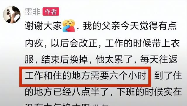 在事情发生后,一位抖音用户出来认领了视频中的农民工,说那是他的父亲,替父亲感谢大家的帮助,还说被骂的父亲感到内疚,平时出门也会换衣服,但是那天太劳累了就没换,结果就发生了那样的事情,他希望赵某峰能给被骂的农民工道歉。