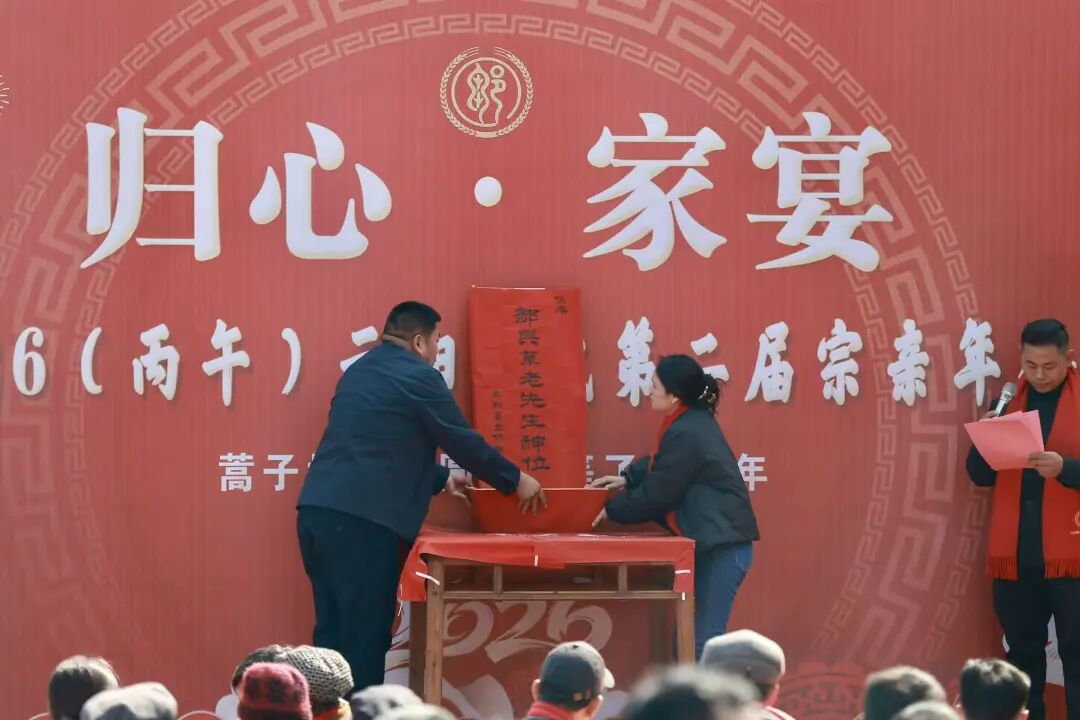 邹兴华老先生的牌位被请上来时,他的长子邹小平上前行跪拜礼。这个从老宅走出去又回来的男人,去年这个时候站在同一个位置,对着族亲们说“把院子腾出来,咱们自己办年会”。一年过去,院子还是那个院子,只是院墙上多了块“邹氏宗亲活动点”的牌子,是广东来的书法家邹春光昨天下午现写的。