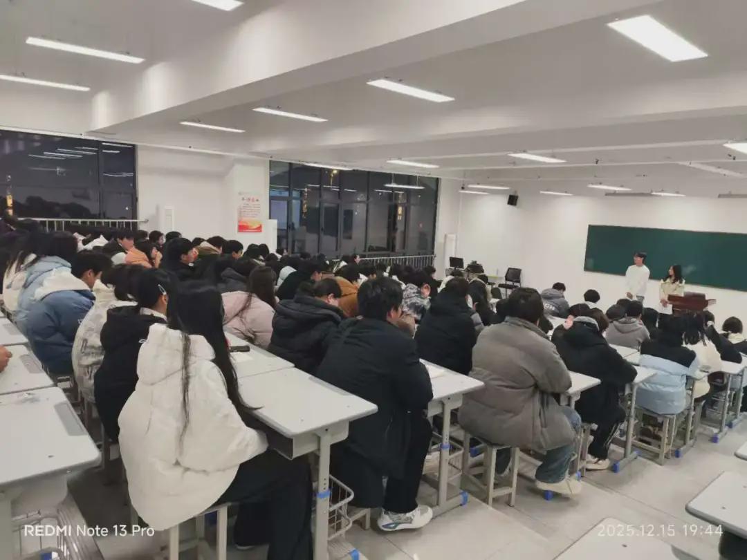 实操赋能让培训走出课堂。王婉琰老师组织的情景模拟课上,12组学员轮番上阵,在“实训课安全隐患上报”“大型活动突发状况处置”等8类场景中实战练兵,现场掌声此起彼伏;李君伟老师的应急处理演练更让学员直呼“收获满满”,通过灭火器规范使用、外伤紧急包扎等实操训练,学员们的应急处置能力得到显著提升;杨永钊老师的“筑牢安全防线,共建文明家园”讲座,从宿舍安全、学风建设等细节入手,进一步强化学员的集体意识。