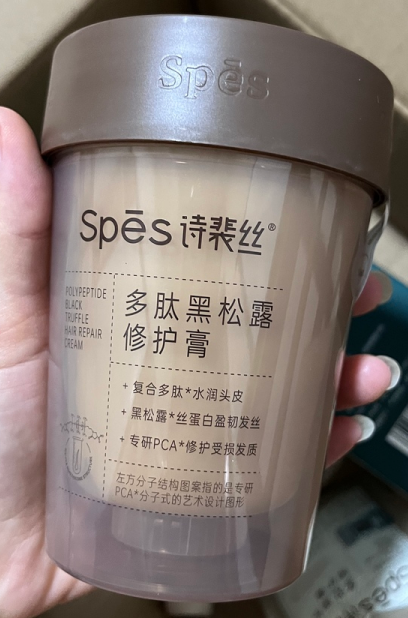 Spes这个牌子在护发圈不算太火,但经常能看到它家的产品出现在一些专业沙龙里。品牌主打科技护发路线,喜欢用黑松露提取物、深海鱼子酱这类听起来很高大上的成分。包装设计走的是实验室风格,深棕色的瓶身配银色盖子,放在浴室里还挺有专业感的。