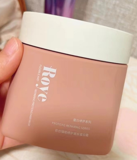若也算是个比较新的护发品牌,主打植物成分和简约包装路线,整体风格偏年轻化。这款蛋白霜的包装确实挺讨喜,淡粉色瓶身配白色泵头,放在浴室里颜值在线,拍照很出片。质地是偏稠的乳霜状,推开还算顺滑,里面加了美藤果油,吹干后头发会有点自然的光泽感,不是那种假滑的硅感。