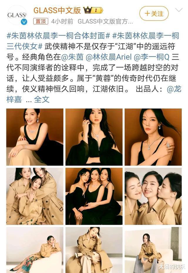 今日,GLASS中文版官方于社交平台分享了一组朱茵、林依晨和李一桐的合体封面。当三代黄蓉同框的瞬间,仿若一道绚烂的光,瞬间穿透岁月的帷幕,勾起无数人对武侠江湖的珍贵回忆。