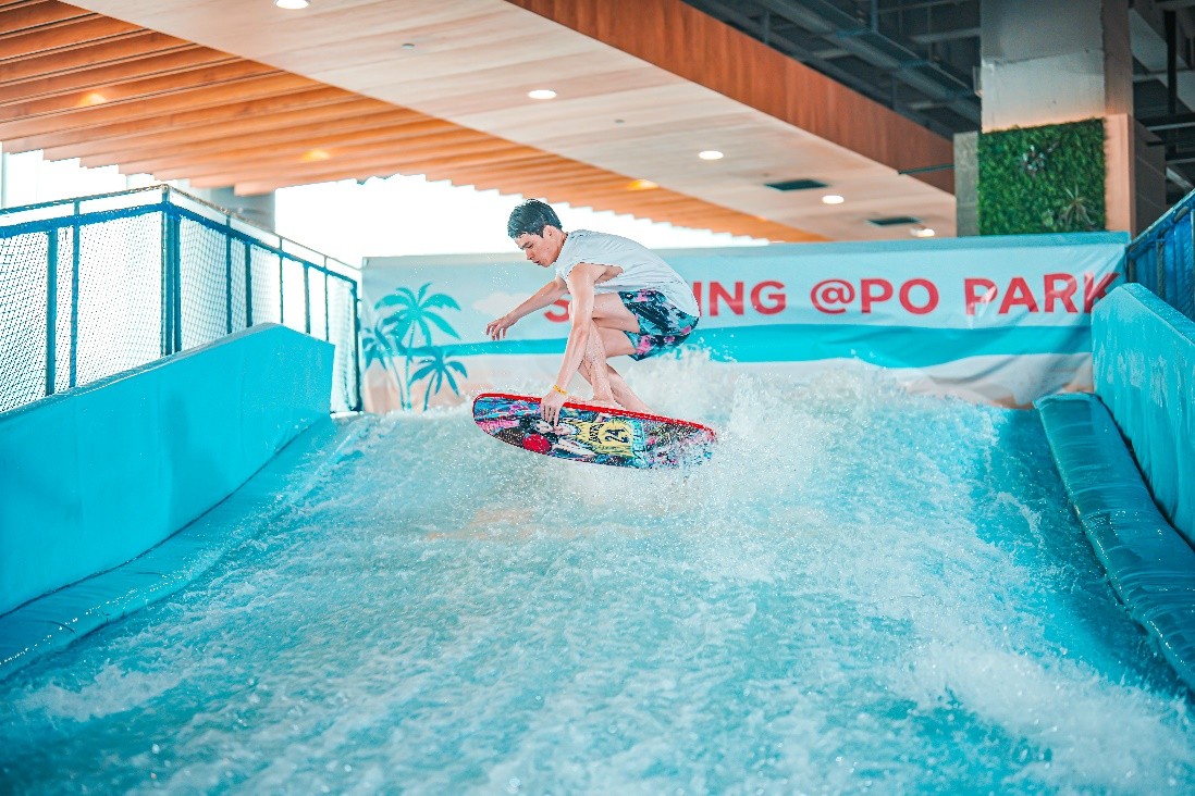 炎炎夏日, 7月14日起PO PARK 东方宝泰首层化身瀑布下的穹顶水上乐园,天河北首个半室内13米冲浪机将登陆PO PARK 东方宝泰首层瀑布内广场!