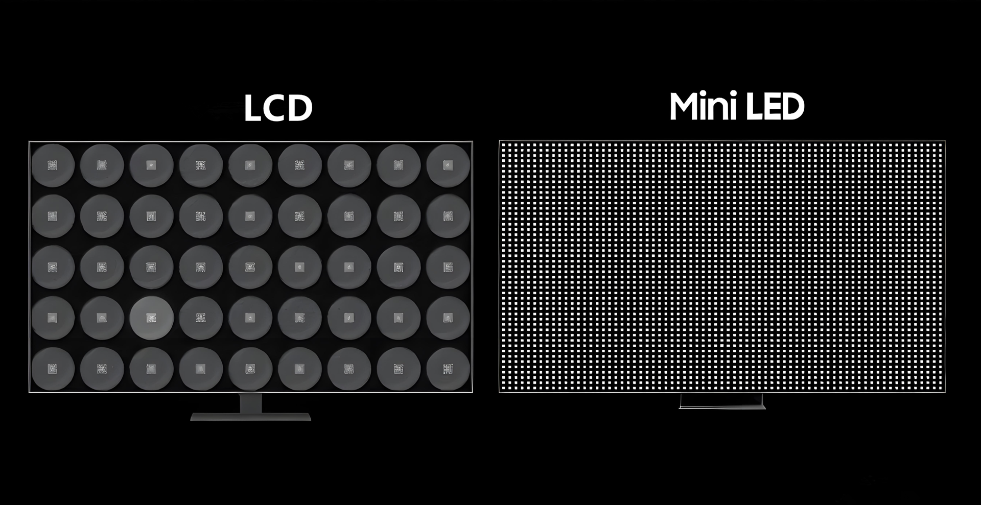 首先给大家科普一下,其实Mini LED 并不是什么全新的显示技术,本质上它还是属于 LCD 液晶显示技术的一种,只不过是把背光源做了深度优化,换成了更小尺寸的 LED 灯珠,这些灯珠的尺寸通常在 100 - 300μm 之间。别小看这小小的改变,它带来的画质提升可不容小觑!相比传统的 LCD 电视,Mini LED 电视有着超多优势。
