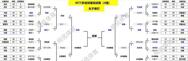 在北京时间1月11日的凌晨时分,乒乓球WTT多哈球星挑战赛已然完成了倒数第二个比赛日的激烈角逐。至此,单打项目的四强席位已然尘埃落定(具体对阵情况可参照如下图表)。