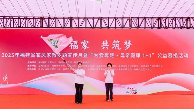 5月11日,由福建省妇联、福建省体育局和福州市人民政府共同主办的“幸福家 共筑梦”2025年福建省家风家教主题宣传月暨“为爱奔跑·母亲健康 1+1”公益募捐活动在福州市海峡文化艺术中心举行。省妇联党组书记、主席林叶萍出席活动并带头开展现场公益募捐。省体育局党组副书记、副局长董劲松,福州市副市长梁栋、省政协社会和法制委员会副主任欧秀珠、省纪委监委驻省总工会机关纪检监察组组长苏勇、省妇女儿童发展基金会理事长杨丽卿等出席活动。