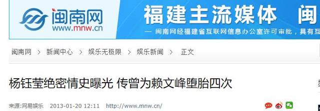 杨钰莹绝密情史曝光 传曾为赖文峰堕胎四次-闽南网