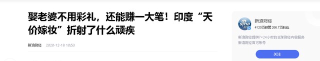 新浪财经:娶老婆不用彩礼,还能赚一大笔!印度“天价嫁妆”折射了什么顽疾
