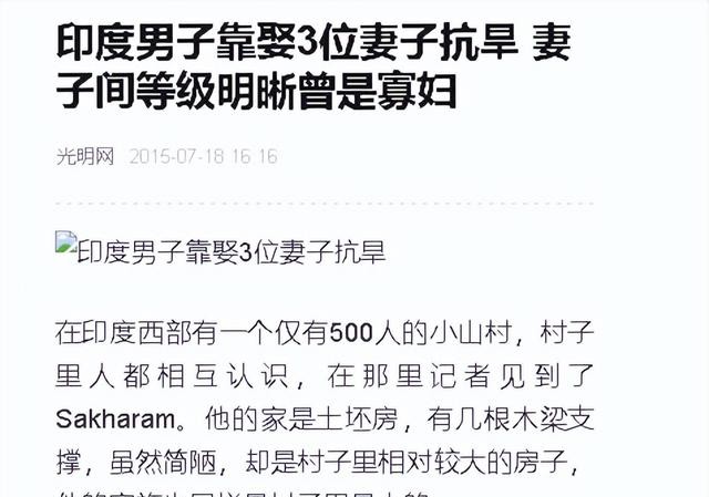 光明网:印度男子靠娶3位妻子抗旱 妻子间等级明晰曾是寡妇