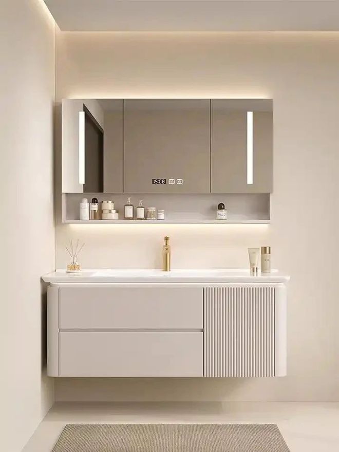 快装式防水浴室柜安装简单快捷,而且防水性能好,不用担心浴室柜受潮变形。