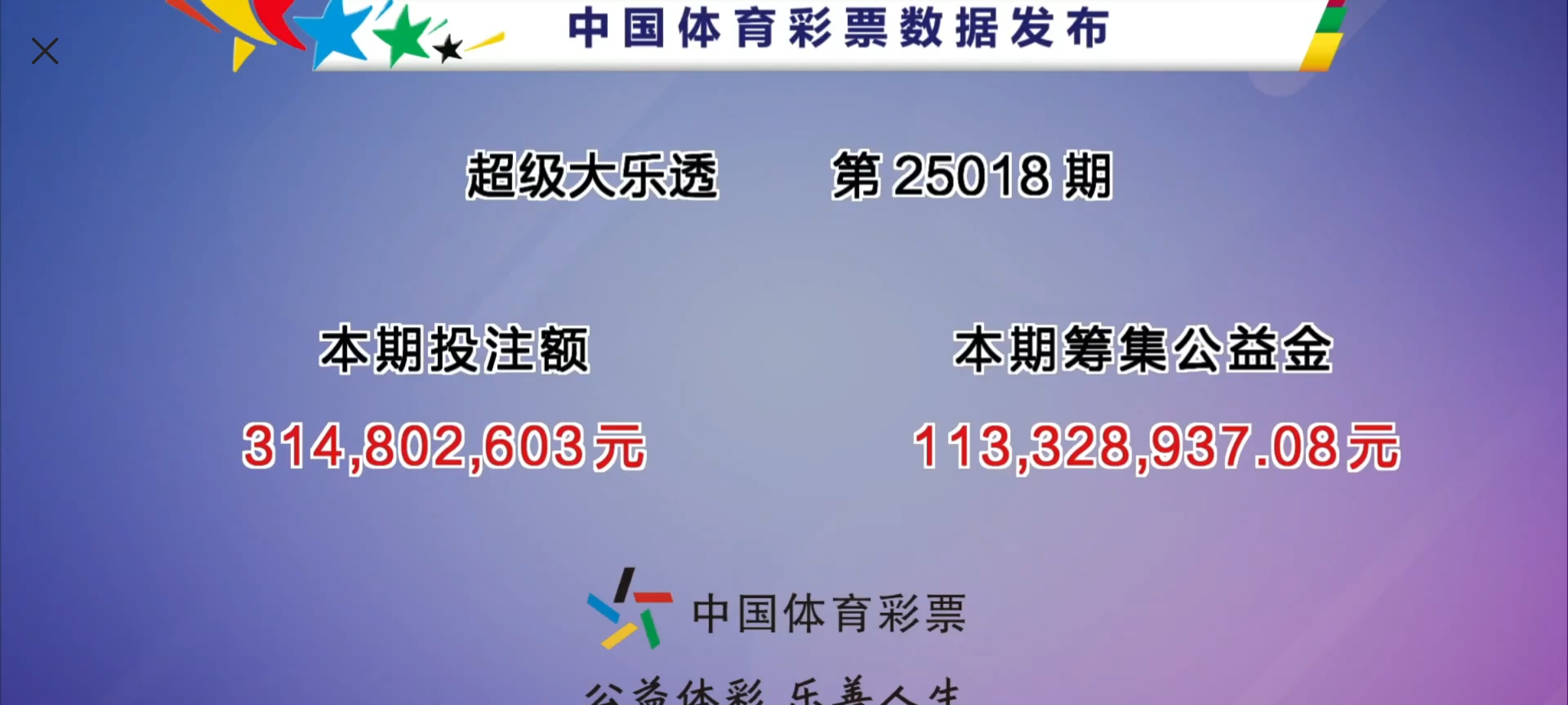 本期全国彩票销售金额为3.14亿元,募集公益金1.13亿元。