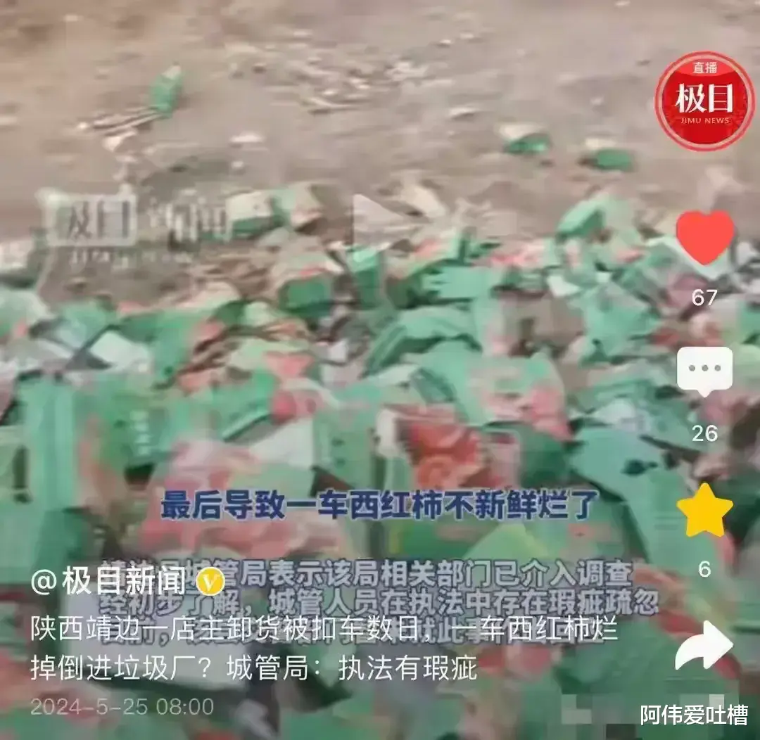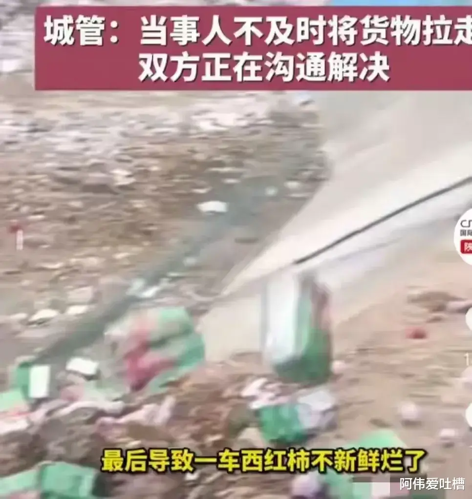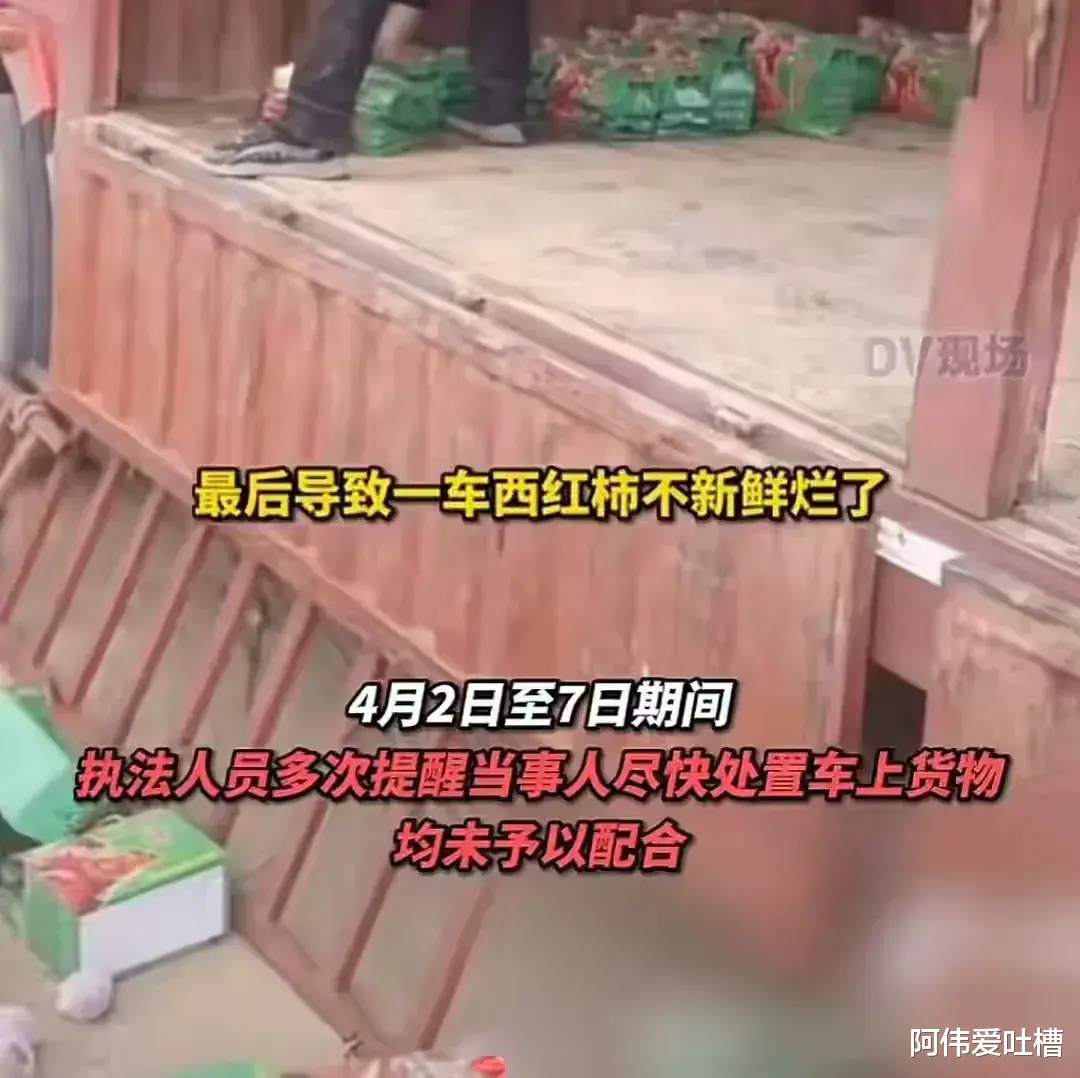 网传陕西榆林靖边县,一辆满载新鲜西红柿的货车,因被举报违规占道,被城管和交警部门连车带货扣押数日,