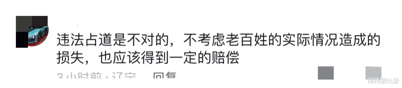——违法占道是不对的,不考虑老百姓的实际情况造成的损失,也应该得到一定的赔偿