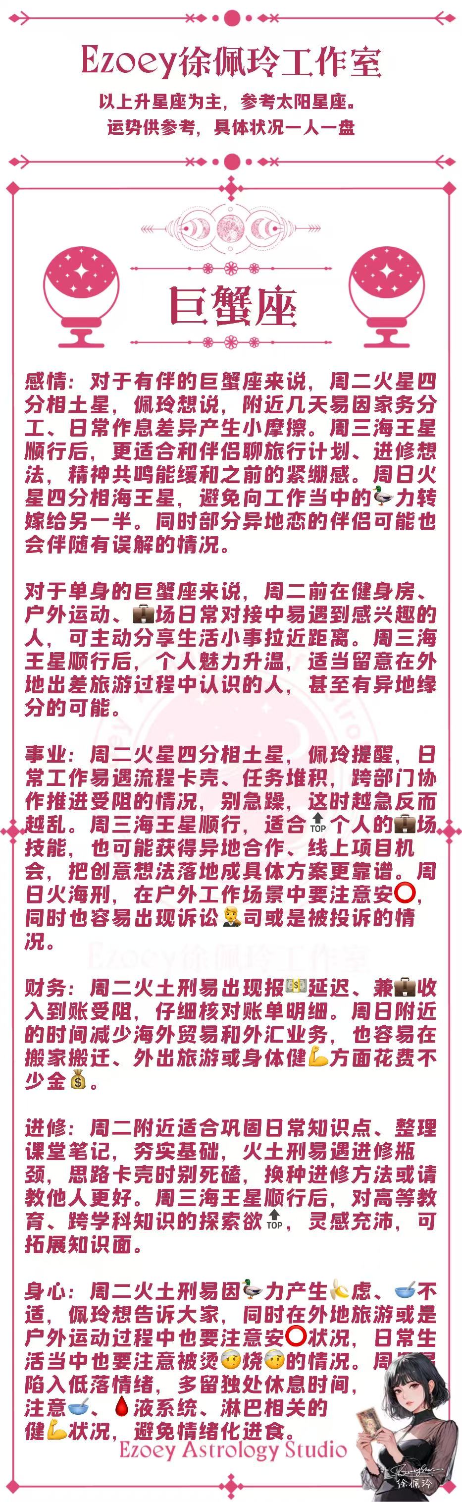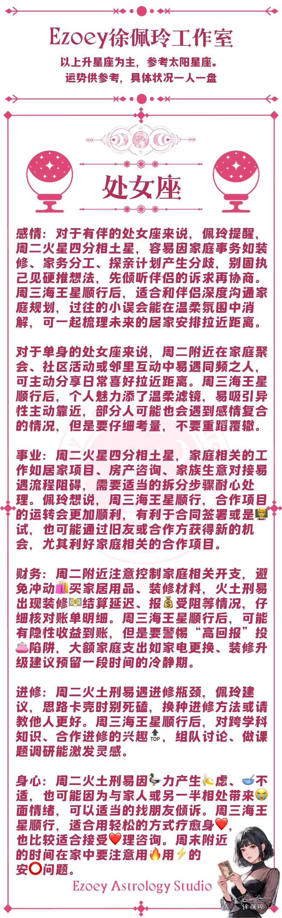 火星和土星的四分相会带来阻碍跟阻力,除了在工作进修上让自己倍感压力之外,身心安康和情绪上也会有一定下滑的情况。