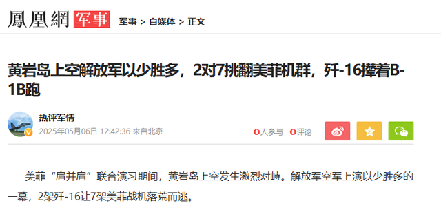 黄岩岛上空解放军以少胜多,2对7挑翻美菲机群,歼-16撵着B-1B跑——凤凰网
