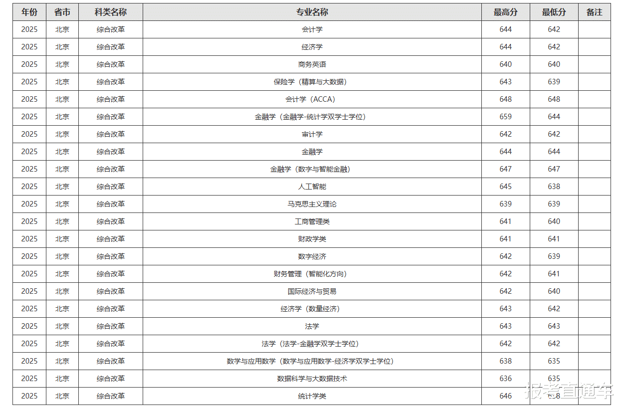 把目光投向一千公里外的上海,上海财经大学在北京这个中国高等教育资源最密集的城市,上演了一场无声却震撼的“盛宴”。在2025年的北京地区,上次阿出了一份令人咋舌的答卷:最高分飙升至659分,录取的是金融学(金融学-统计学双学士学位)专业;即便是所谓的“最低门槛分”,也维持在635分的高位,对应专业为数学与应用数学(数学与应用数学-经济学双学士学位)以及数据科学与大数据技术。